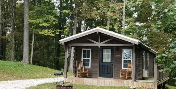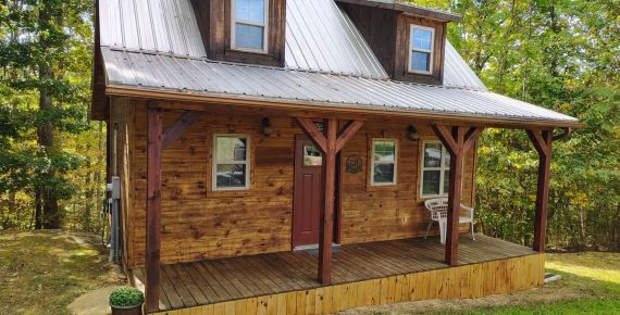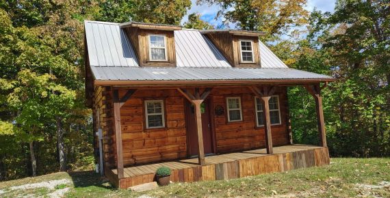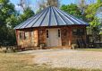 Our Highlander Rustic Yurt is an extremely unique octagonal cabin — a true octagon and unlike any cabin in the world. The eight main logs were harvested from great Ash trees located on the Rustic Ravines property. The trees were infected with the Ash Beatle and dying. The roof is a Corn Bin roof and 20-feet high in the center.